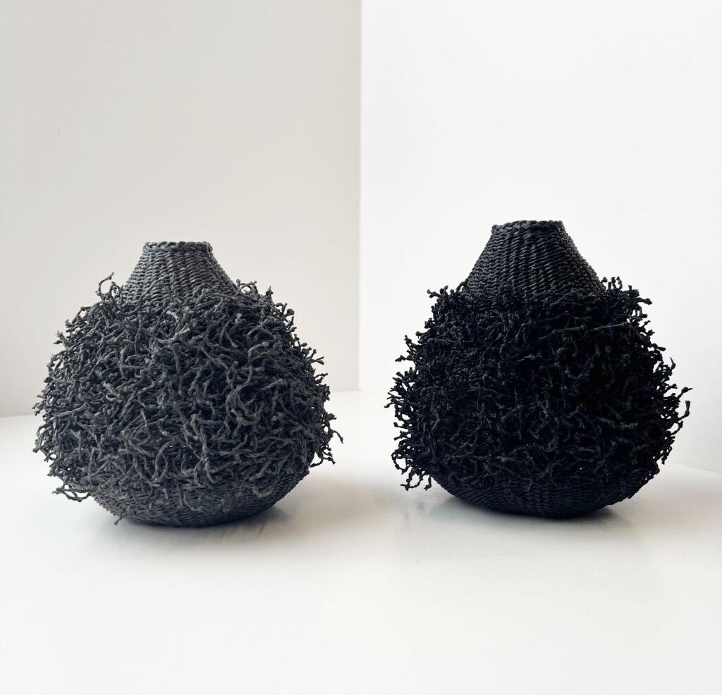 Og jeg giver forskerne ret i, at det må have krævet uendelig meget tid at fremstille bronzealder-huerne, for i mine flettede FLOSS kurve er det fremstillingen af det tynde håndsnoede papirgarn med knuder – og den efterfølgende indsætning af elementerne på hver sin ‘stage’, der tager længere tid end selve fletning af kurven.